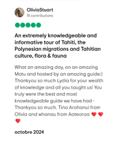 Si vous recherchez une expérience authentique et enrichissante pour découvrir Tahiti au-delà des clichés touristiques, Tours of Tahiti by Lydia est une excellente option.